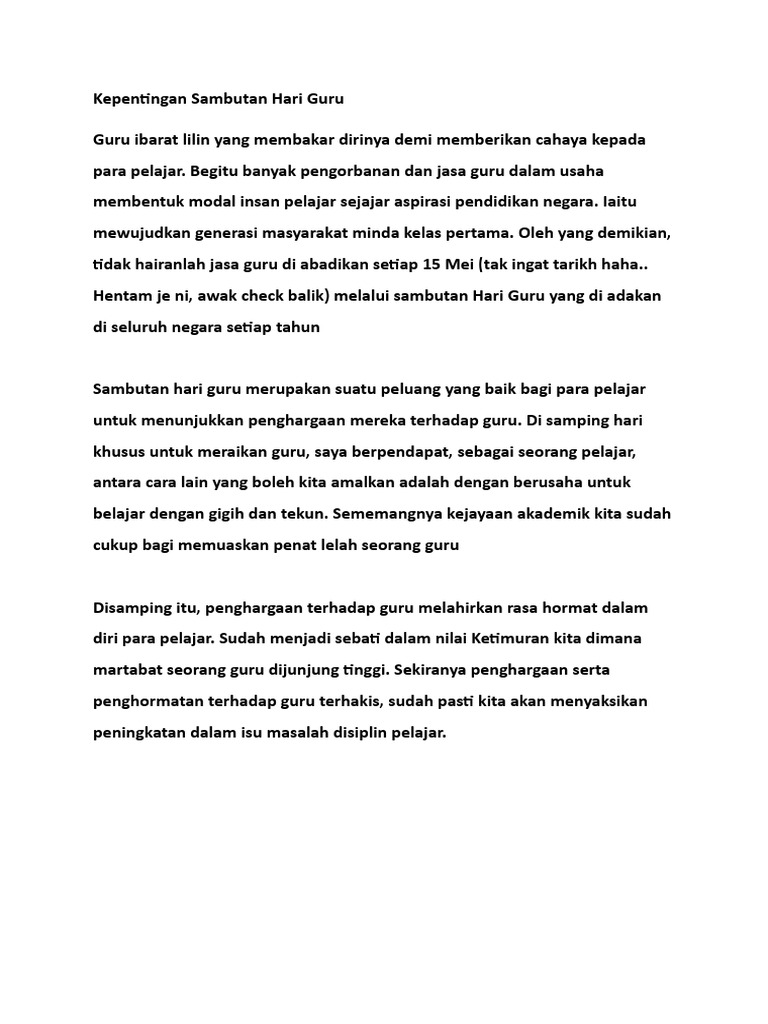 Malah pelakon-pelakon yang mereka kenali juga boleh membuatkan drama video tersebut akan lebih dinanti-nanti oleh pelajar lain. Wahai ibu bapak guru. Selamat Hari Guru Anda adalah percikan inspirasi buku panduan lilin dalam hidup saya.
